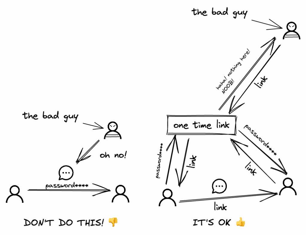 - not sending secrets directly via messages – to avoid access to secrets in case a slack account was compromised