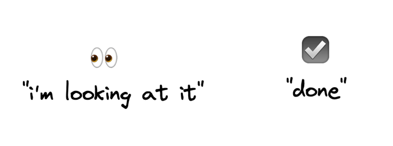Examples could include eyes emoji (👀) that shows that someone already is looking at the problem, or checkmark (☑️) that the topic is closed and there is no need to look at it.