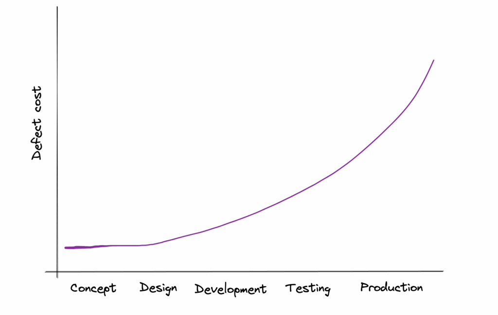 One such rule could be to always consider multiple options. Even if the first option seems good enough, it’s worth spending a little bit more time, just to make sure the idea is indeed good enough. The idea is to fail as cheaply as possible, so better to prove the solution to be bad still in the design phase rather than after the rollout. The concept is also called “shifting left” because if we consider the cost of the defect over time we would like to detect it as far to the left as possible. (Manshreck, Winters, Wright, 2020)