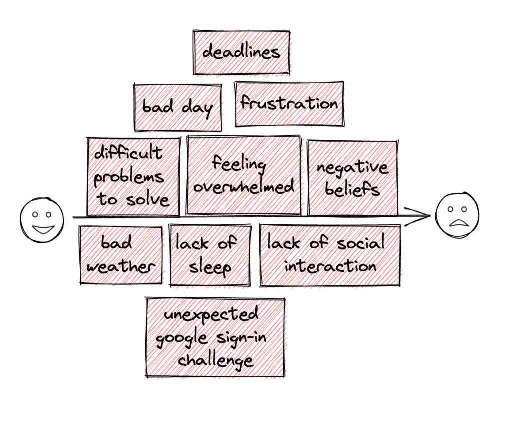 These factors may contribute to our negative emotions and stress. Staying in the state for too long and we end up burnt out.