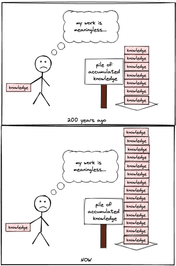 But the thing is that our lives are a bit too short to understand what effect our work can have on future generations. We constantly push forward, generate new knowledge, but how can we even compare the software we write to the invention of electricity, airplanes, cranes and so on?