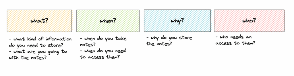 So I needed a system. I didn’t know where to start, but hopefully, I came across a course on better note-taking by a smart guy I used to work at the same company with. (The course is in Polish though). It led me through the process of rethinking the way I collect notes and data and designing something better.