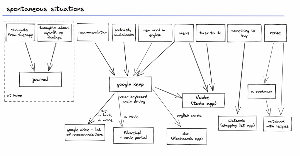 The temporary one is usually Google Keep where I put everything without thinking too much about how to categorize the data. The important thing here is that I need quick access to it. I know that later on I’m going to process these notes.