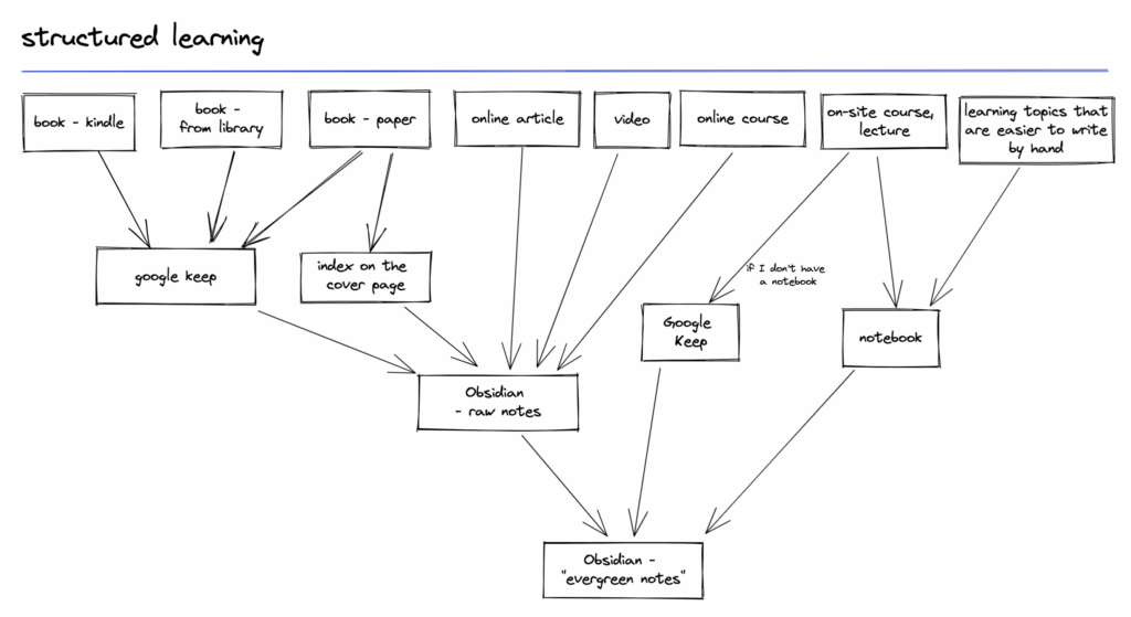 - for onsite courses or lectures, I may bring a notebook with me. If I don’t I still have a google keep on my phone