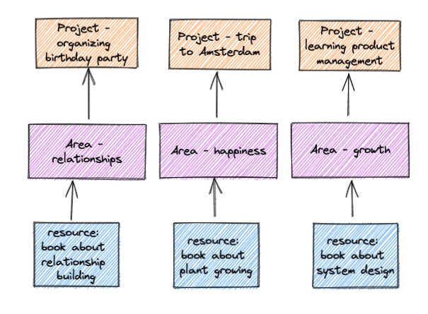 - “Learning system design” – that’s the project that branched off from “areas”. I had an ongoing theme of improving my engineering skills but I created a specific project with specific goals e.g. read this book, read that article.