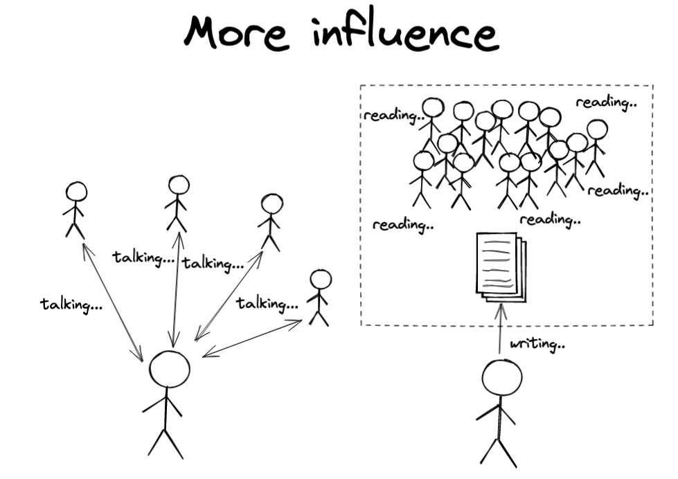 When there’s a group of people and decisions to be made, then for sure we’re going to influence others. If you write, you automatically have a chance to reach more people at the same time.