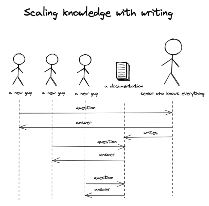 If you write you can scale your knowledge to other team members. Think of it as a database cache. When someone has a question, they don’t have to ask you every time, they can read a piece of documentation that explains the same thing. (Wang, 2020)
