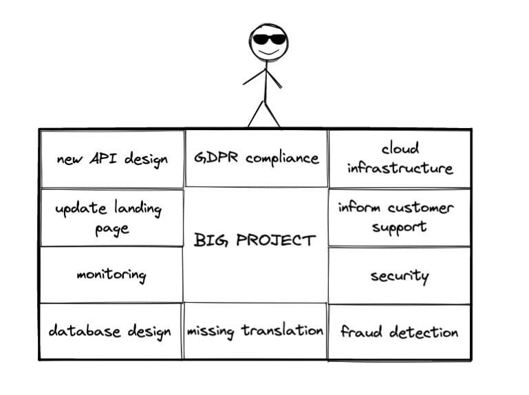 From time to time at work I come across big projects or user stories. They’re so huge that I can’t keep the whole picture of them in mind. I can have a vague idea what I need to do, but as soon as I start working I hit the wall. These overwhelming projects are made of hundreds of decisions to make or actions to take.