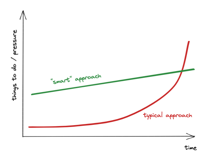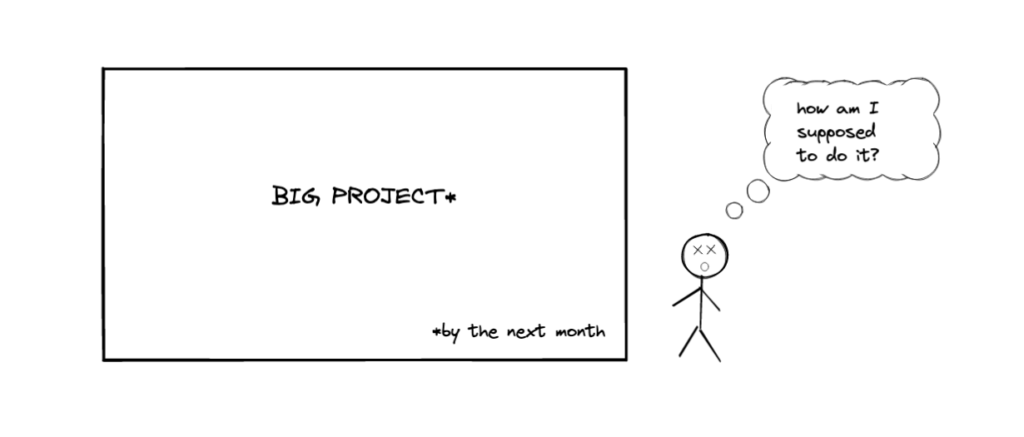 At school I’ve learnt about the divide and conquer approach. In theory it relates to algorithms. But maybe we could translate it to daily work? We could break the big project into smaller tasks. I do it by asking myself what are the next possible things I could do. I’m listing all the steps.